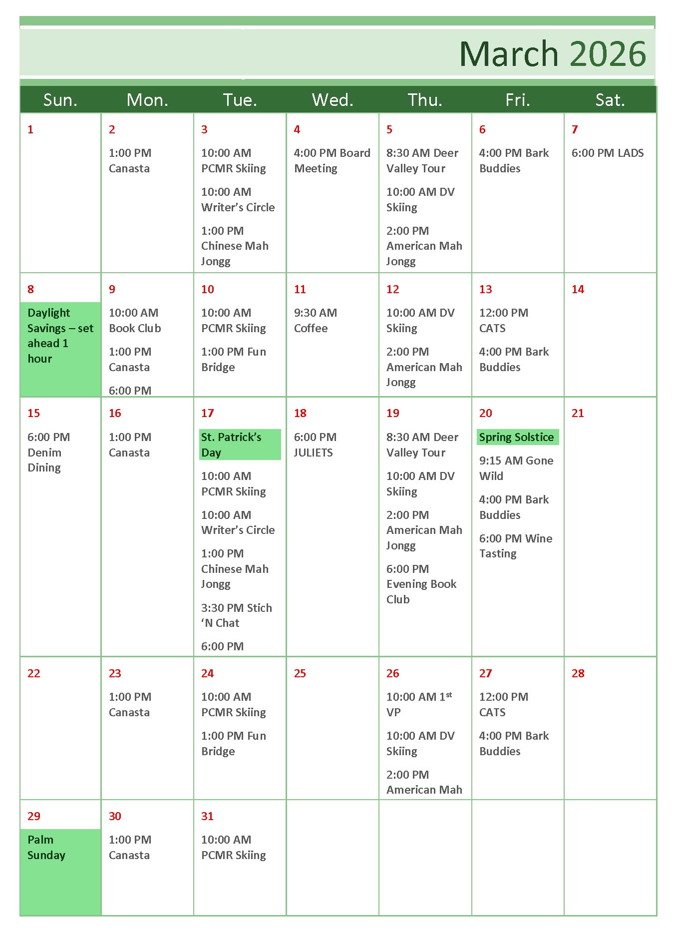 To PRINT, click HERE to view the MARCH 2026 calendar